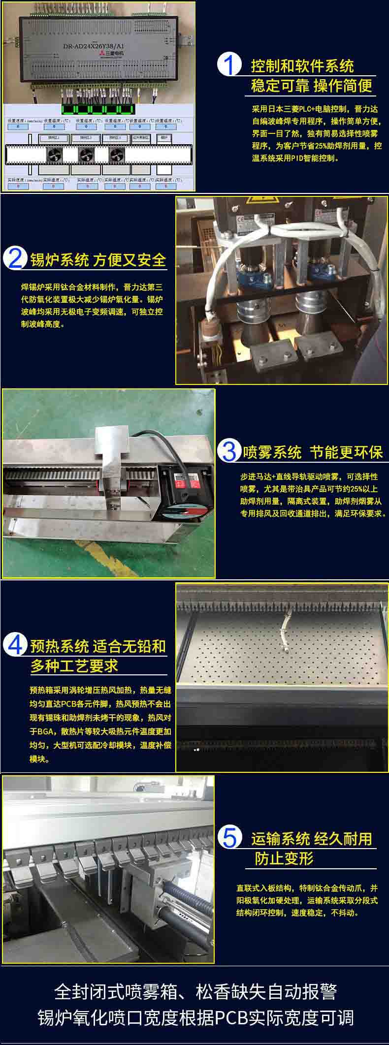 ● 運輸系統閉環控制,精確控制PCB板預熱和焊接時間