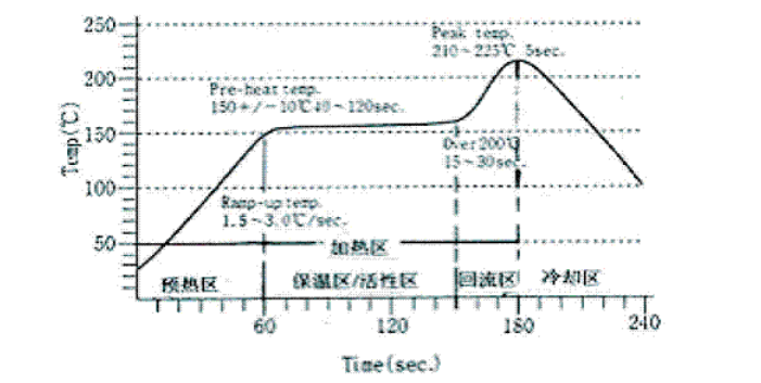 為了加深對(duì)理想的溫度曲線(xiàn)的認(rèn)識(shí),現(xiàn)將各區(qū)的溫度、停留時(shí)間以及焊錫膏在各區(qū)的變化情況,介紹如下: