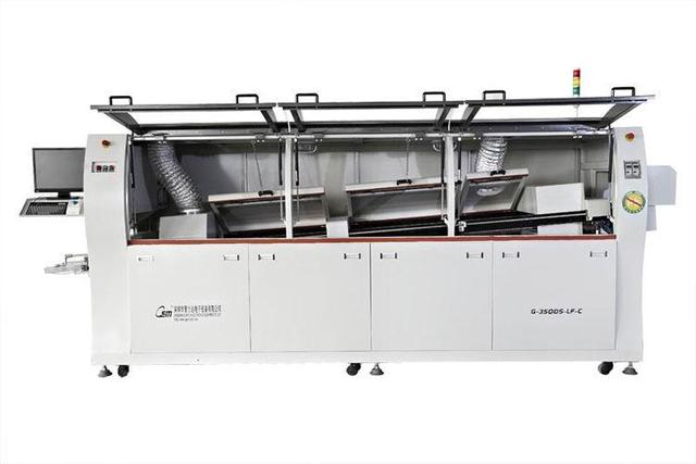 2、電磁泵波峰焊機的波峰高度太高或引腳長,使引腳底部不能與波峰接觸。因為磁泵波峰焊機是空心波, 空心波的厚度4~5mm 左右。