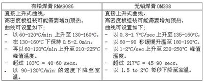 愛法有鉛焊膏 RMA9086 與無鉛焊膏 OM338 推薦回流曲線: